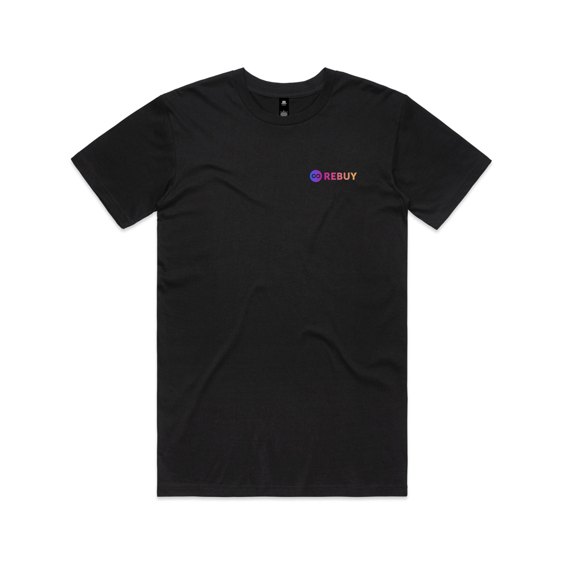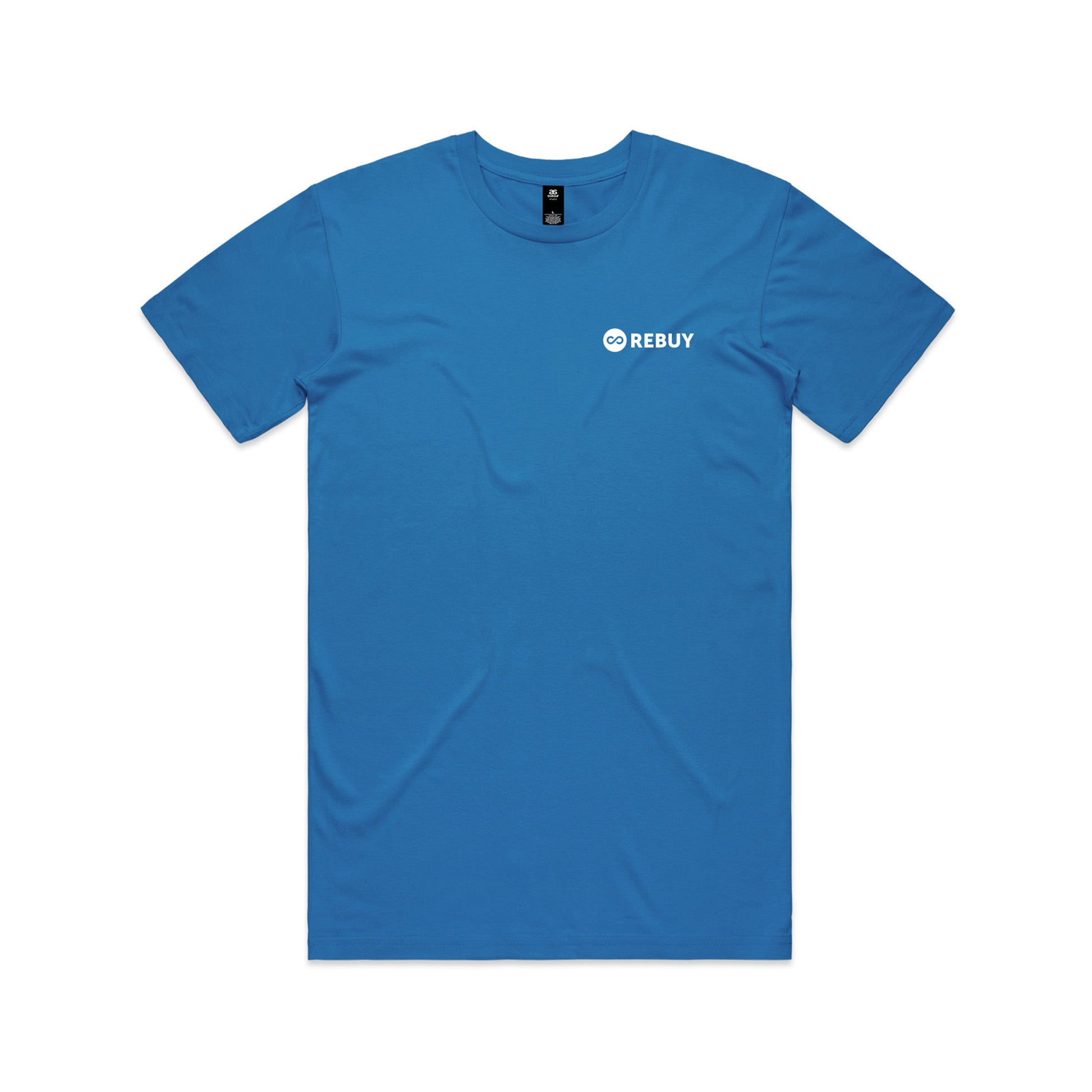 Rebuy logo expertly screen printed with smooth, water-based ink on left chest. Printed on AS Colour 5001 Staple Tee, a medium weight unisex tee.
